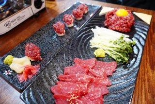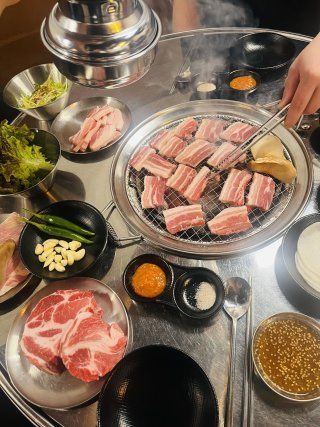 한우는 마블링이 고르게 분포되어 있어 고소하면서도 부드럽고, 숙성이 잘 되어 있어 씹을 때 육즙이 자연스럽게 터진다. 삼겹살·목살 등 돼지고기 라인도 질이 높으며, 숯불 향이 은은하게 베어 고기 풍미를 더욱 살린다. 반찬 구성도 김치·무생채·명이나물 등 깔끔한 조합이 돋보인다.